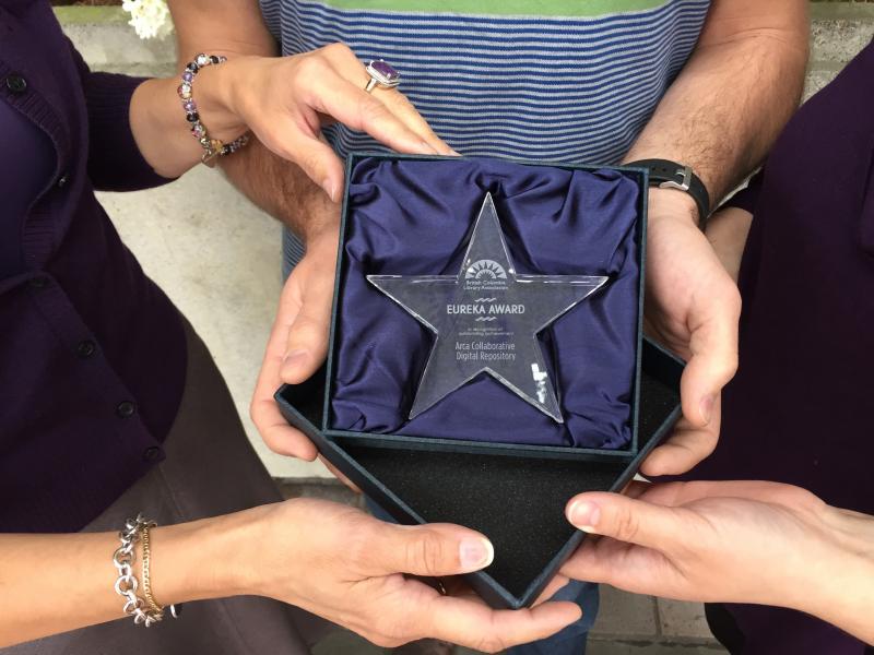 Arca Digital Repository - a shared service among a growing number of institutions in British Columbia - has won the inaugural BC Library Association Eureka Award, presented at this year's BC Library Conference. The award is given to an individual or organization that has created an innovative approach to address a barrier, solve a problem, provide a powerful new insight, or introduce an original idea in the library field.