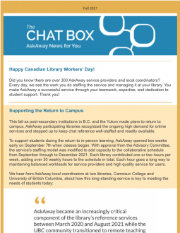 Catch up on AskAway news with the Chat Box Fall 2021: